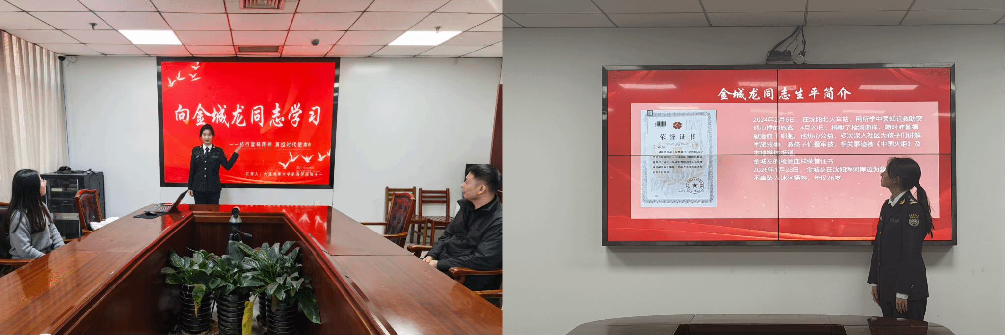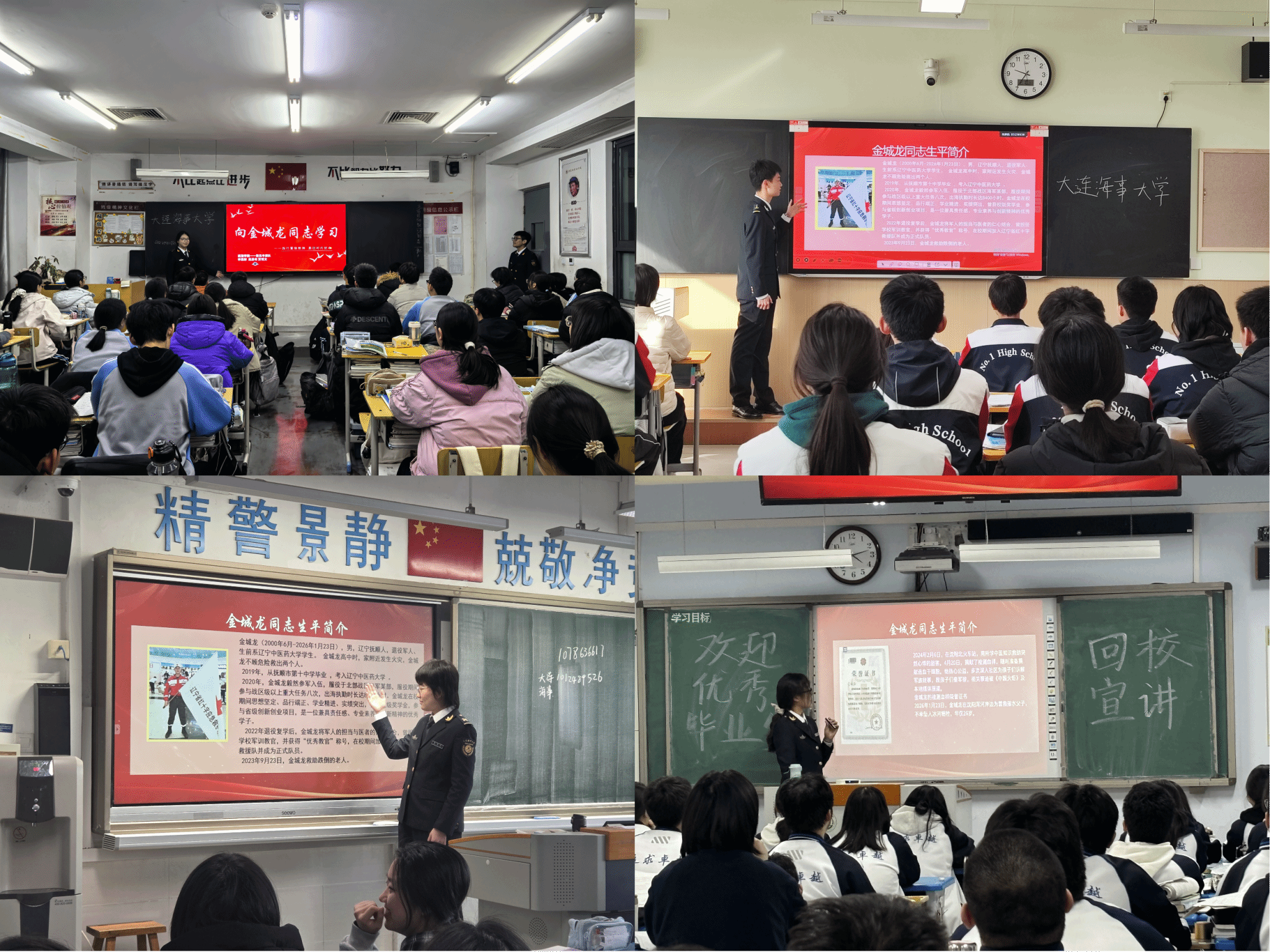 学院各团总支积极行动,召开主题团日活动,开展专题学习,通过观看事迹报道、开展交流研讨等形式,深入学习金城龙同志携笔从戎守护祖国海疆、累计无偿献血4000毫升、冰河之上舍身救人的感人事迹,深刻感悟其“无名无利无悔,有情有义有祖国”的价值追求,深入学习金城龙同志信念坚定、矢志报国的思想品格,舍生忘死、挺身而出的英雄气概,甘于奉献、服务社会的高尚情操,永葆本色、向上向善的朴实作风。学习结束后,同学们积极撰写学习心得,分享感悟体会,纷纷表示要以金城龙同志为榜样,传承弘扬其身上闪耀的新时代雷锋精神,立足自身、奋勇争先。