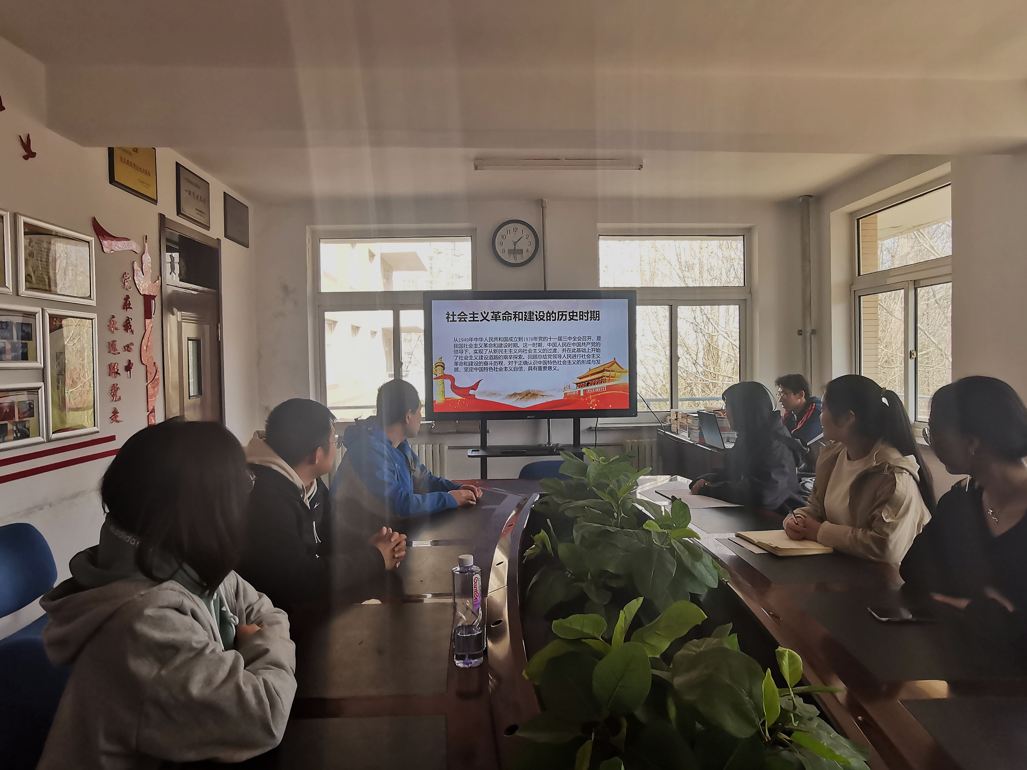 党支部书记主持会议,全体党员参会。支部成员共同学习了党带领人民进行社会主义革命和建设的历史。刘阳同学为向大家讲解了社会主义革命的含义,详细地介绍了社会主义革命和建设时期党领导人民取得的伟大成就。随后,支部书记对此次会议进行总结,鼓励支部全体成员认真学习党的历史,继承和发扬党的优良作风,这对提高自己的认识能力和处理实际问题的能力都是十分必要的。回顾总结党领导人民进行社会主义革命和建设的奋斗历程,对于正确认识中国特色社会主义的形成与发展,坚定中国特色社会主义自信具有重要意义。