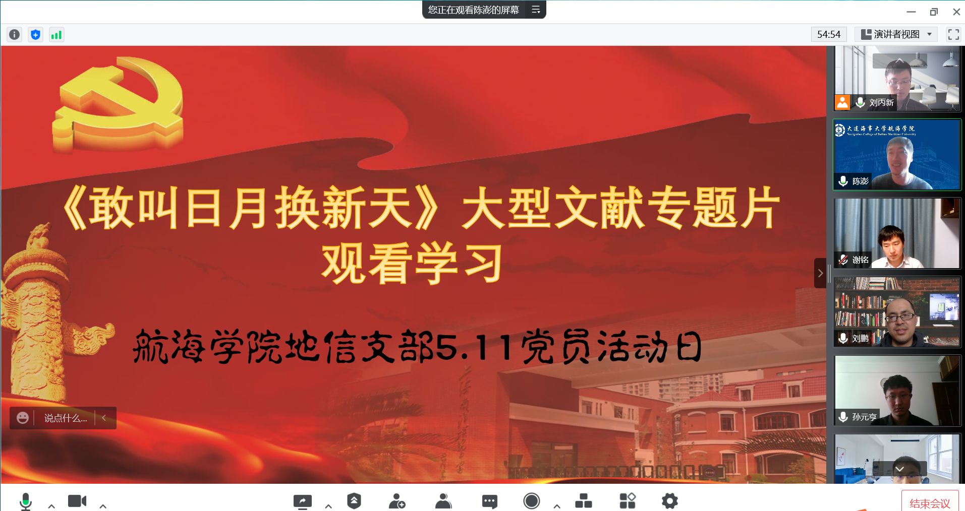 5月11日下午,williamhill地理信息党支部按照学院党委的统一部署和要求,以线上形式召开“观看《敢叫日月换新天》大型文献专题片学习”主题党日活动。支部全体党员参加会议,会议由支部书记陈澎主持。