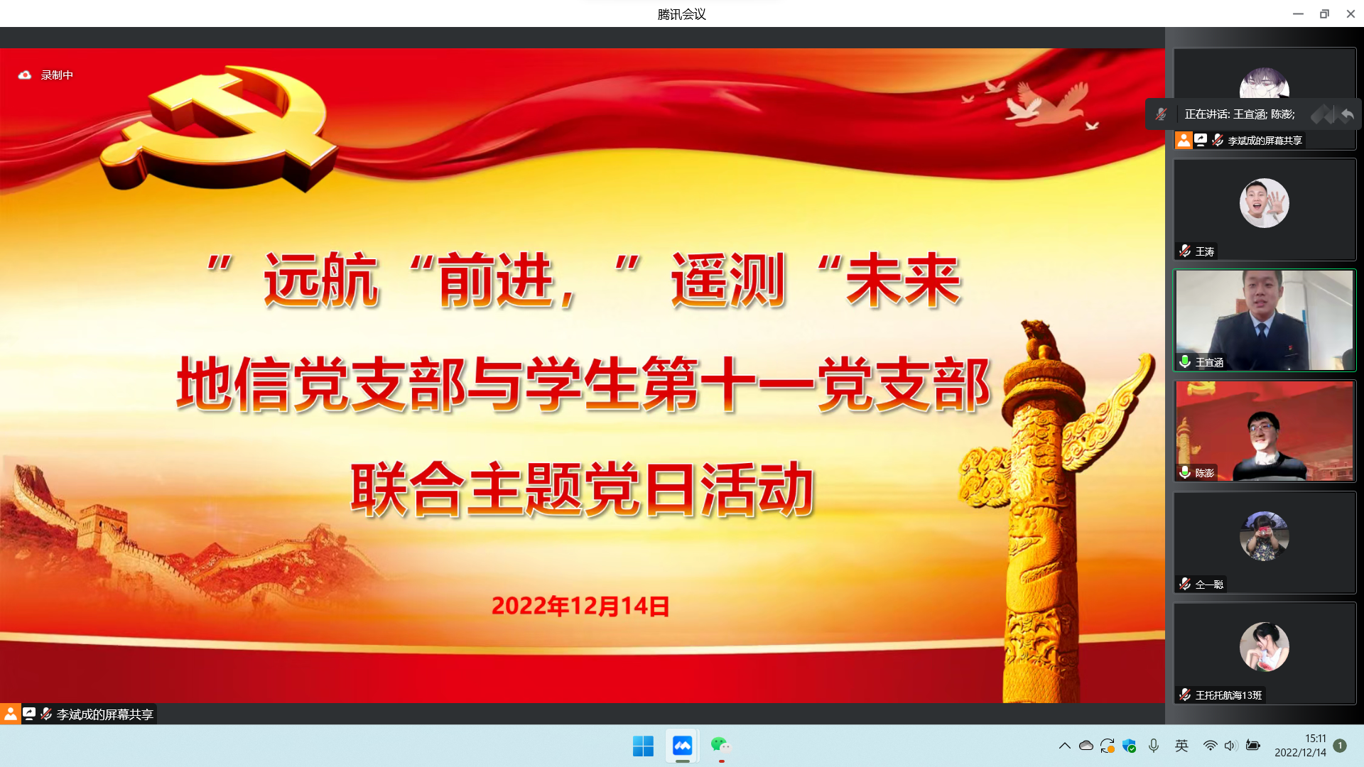 为进一步推进学生党支部与教师党支部携手共建工程,落实高校立德树人根本任务,实现党组织优势互补,充分发挥党支部和广大党员推动发展、凝聚人心、促进和谐的作用。12月14日,williamhill地信党支部、学生第十一党支部开展手拉手共建活动。活动通过腾讯会议举行,支部的全体党员参加,学院副院长肖仲明到会指导并讲授党课。