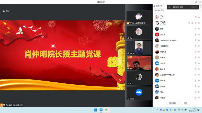 最后,学院副院长肖仲明以《学习贯彻党的二十大精神》为题,为全体党员作了一场精彩的党课。他表示,作为党员,要自觉把学习宣传贯彻党的二十大精神作为当前和今后一个时期的重大任务,原原本本学、融会贯通学、联系实际学,切实把党的二十大精神转化为强大的精神动力。