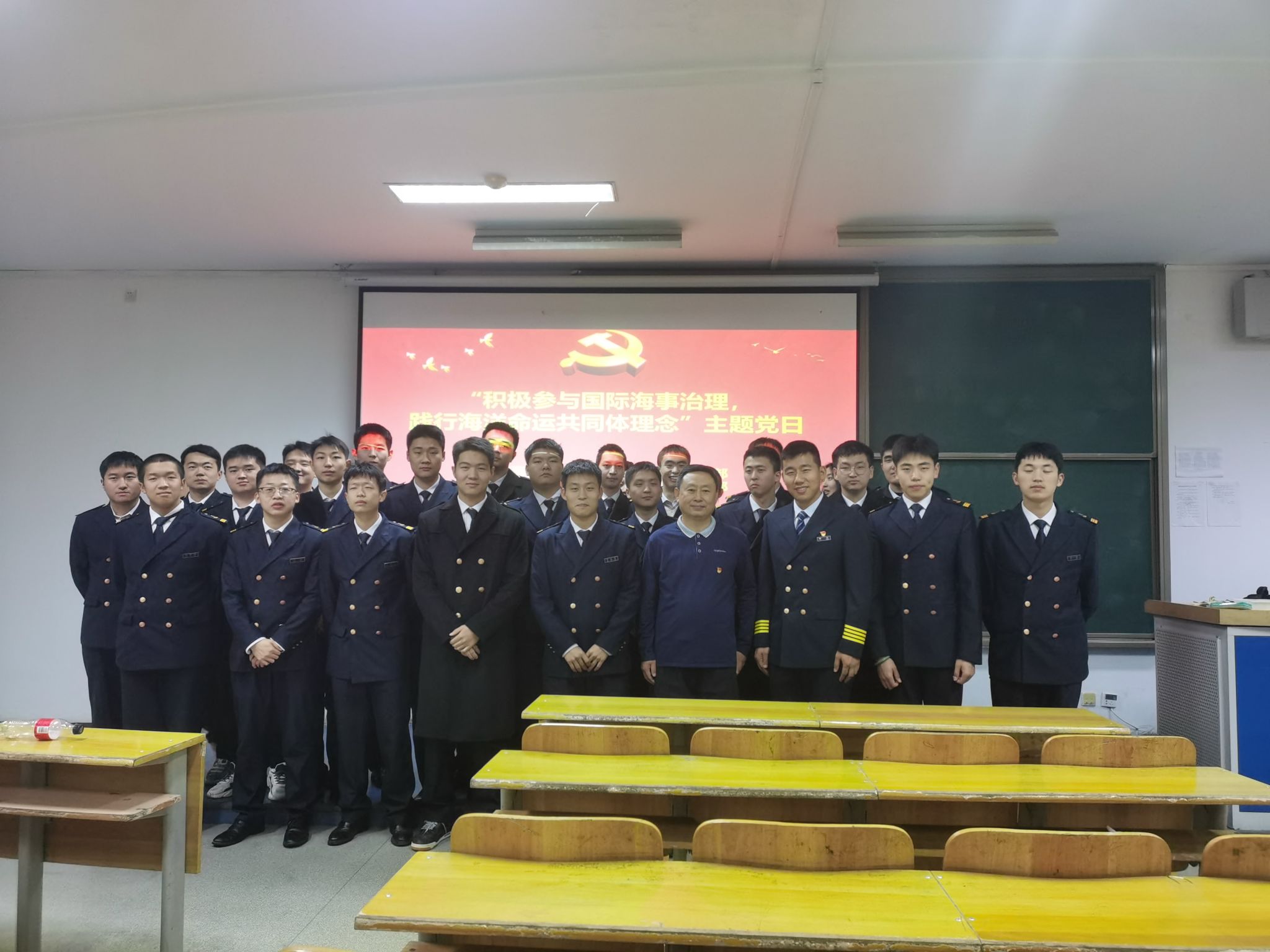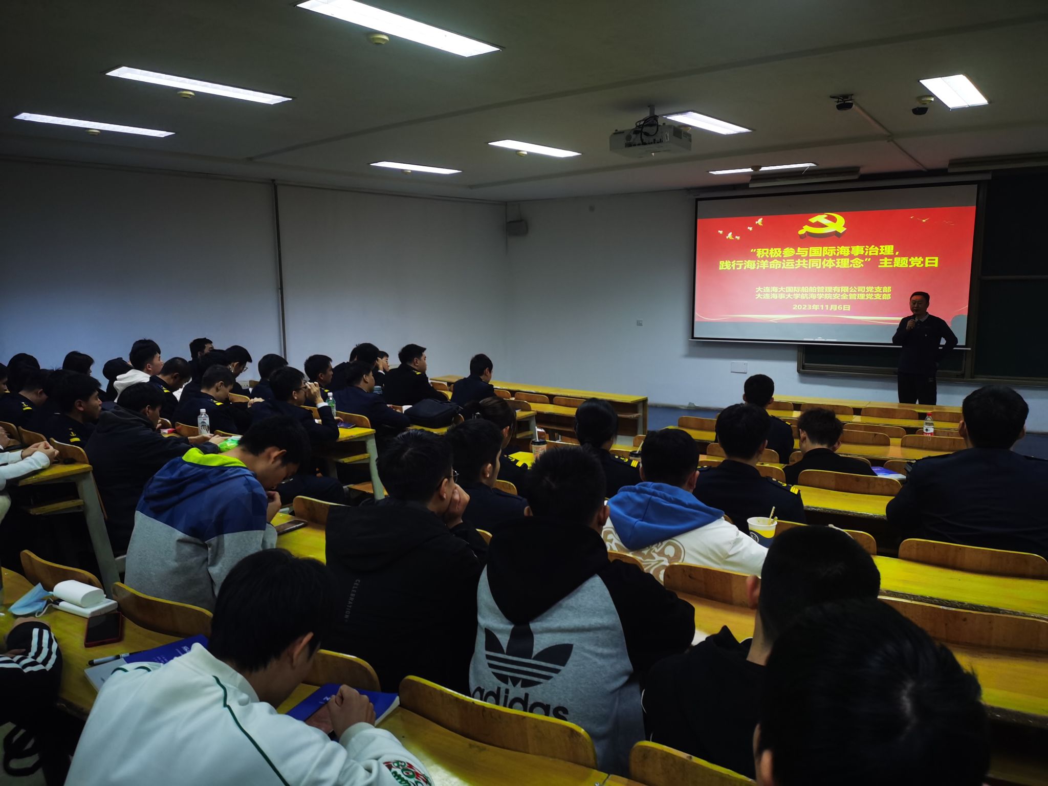 11月6日,williamhill安全管理党支部与大连海大国际船舶管理有限公司党支部联合开展了“积极参与国际海事治理,践行海洋命运共同体理念”主题党日活动。双方党支部党员代表和航海专业学生约80余人参加,活动由williamhill安全管理党支部书记黎泉主持。