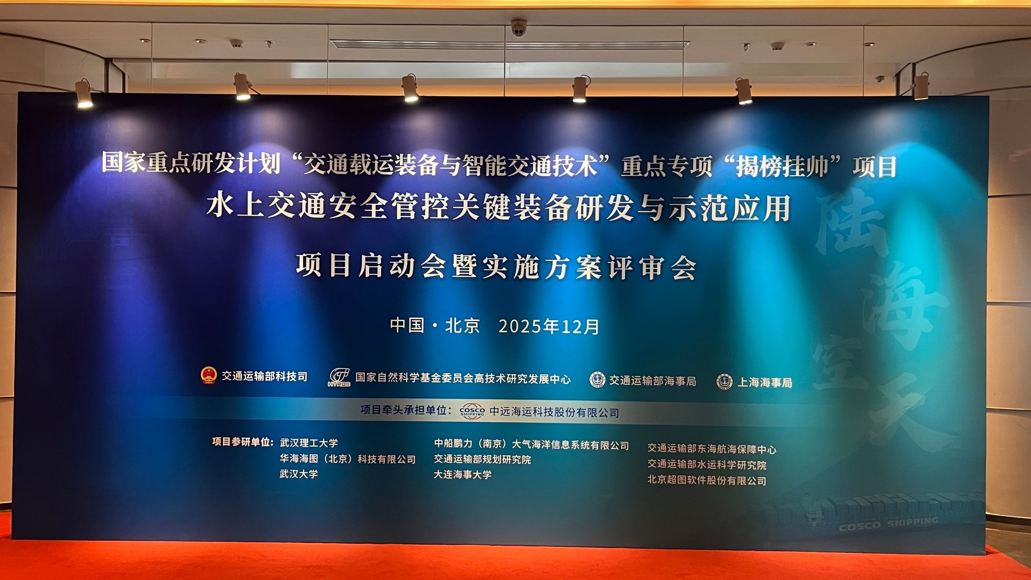 2025年12月10日,国家重点研发计划“交通载运装备与智能交通技术”重点专项“水上交通安全管控关键装备研发与示范应用”揭榜挂帅项目启动会暨实施方案评审会在京顺利召开。该项目由中远海运科技牵头,我校与武汉理工大学、中船集团所属中船鹏力、交通运输部东海航海保障中心、华海海图、交通运输部规划研究院、交通运输部水运科学研究院、武汉大学、北京超图等共同参研。williamhill潘明阳教授与李邵喜副教授分别负责了“海图生产制图关键技术与系统研发课题”的“海图产品保护和质量验证与应用”和“海图生产制图源数据分析与维护”子任务。