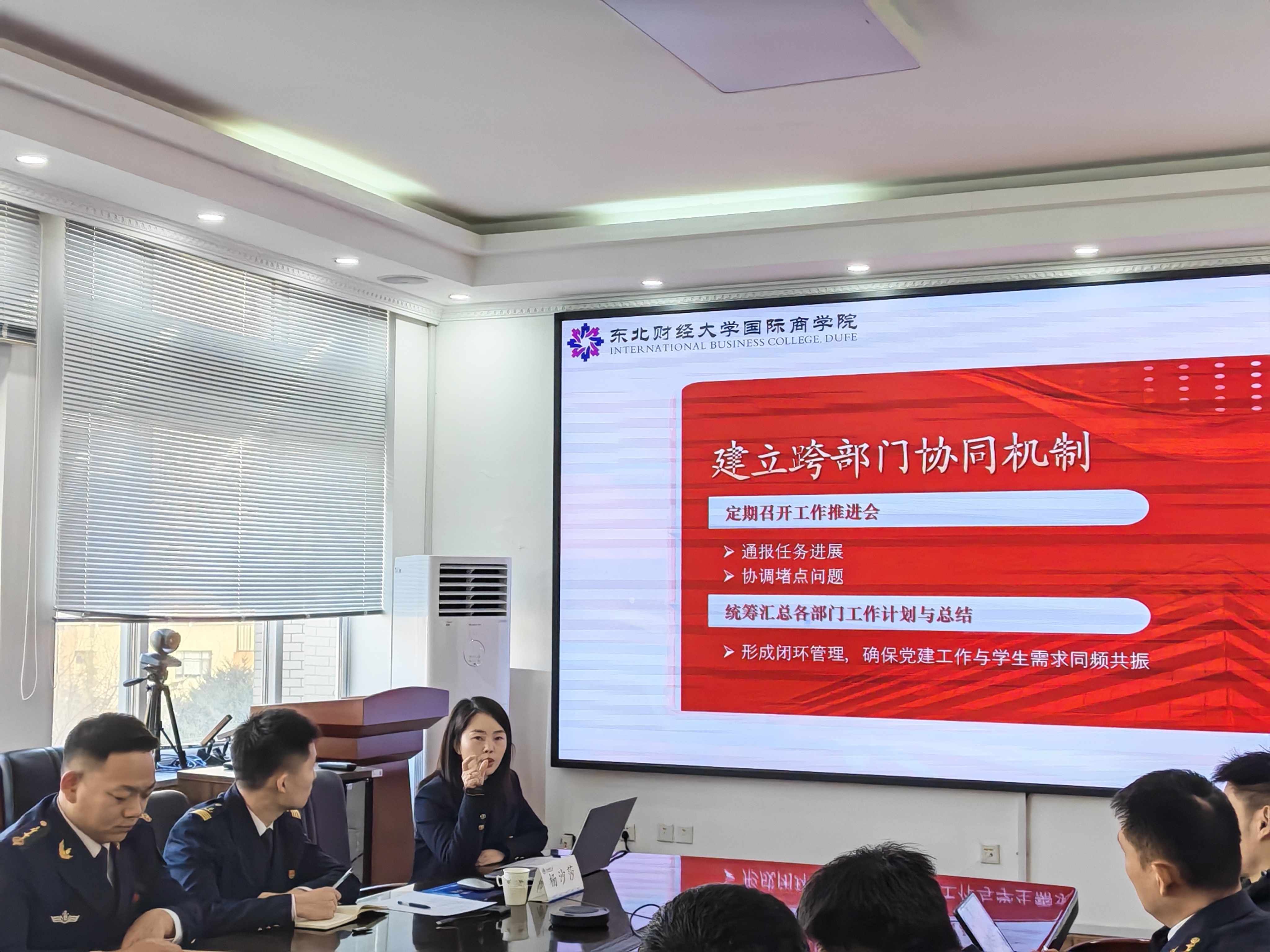 分享环节中,杨沙莎老师以国际商学院“大学生党员发展服务中心”建设为核心,介绍了党建“一核四翼”工作体系,详细阐释了东北财经大学国际商学院学生党建工作的整体布局与创新实践,重点分享了“驻班党员”“红色宣讲团”“电子党刊”等特色品牌建设经验,为学院党建与学生工作深度融合提供了宝贵借鉴。