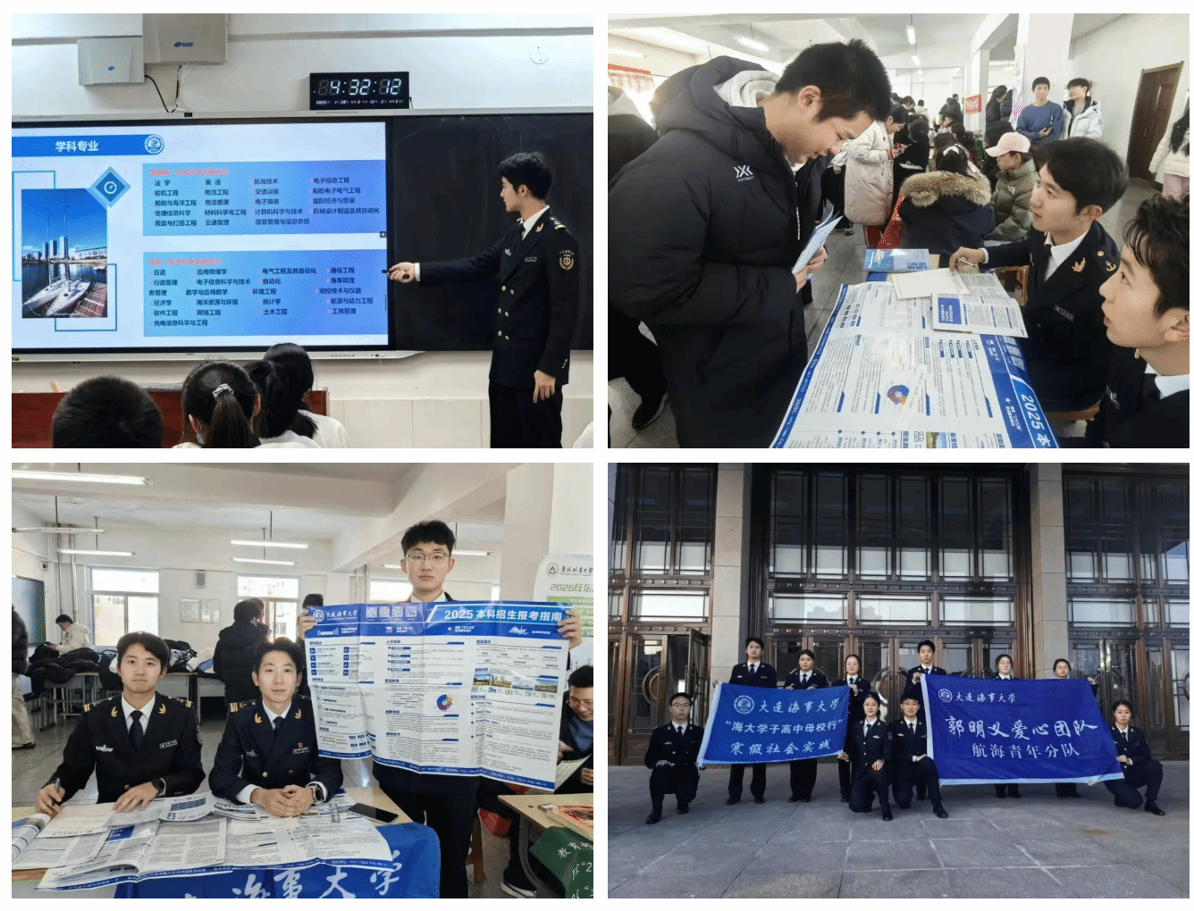 “航帆筑梦”实践团队利用寒假重返营口开发区第一高级中学开展宣讲,十三名成员来自不同年级、专业,团队提前明确分工,设计宣传海报、运营公众号扩大活动影响力。宣讲前一周,队长组织线下培训,队员交流总结高考备考、志愿填报经验,同时系统学习校情知识,为高效宣讲做好充分准备。
