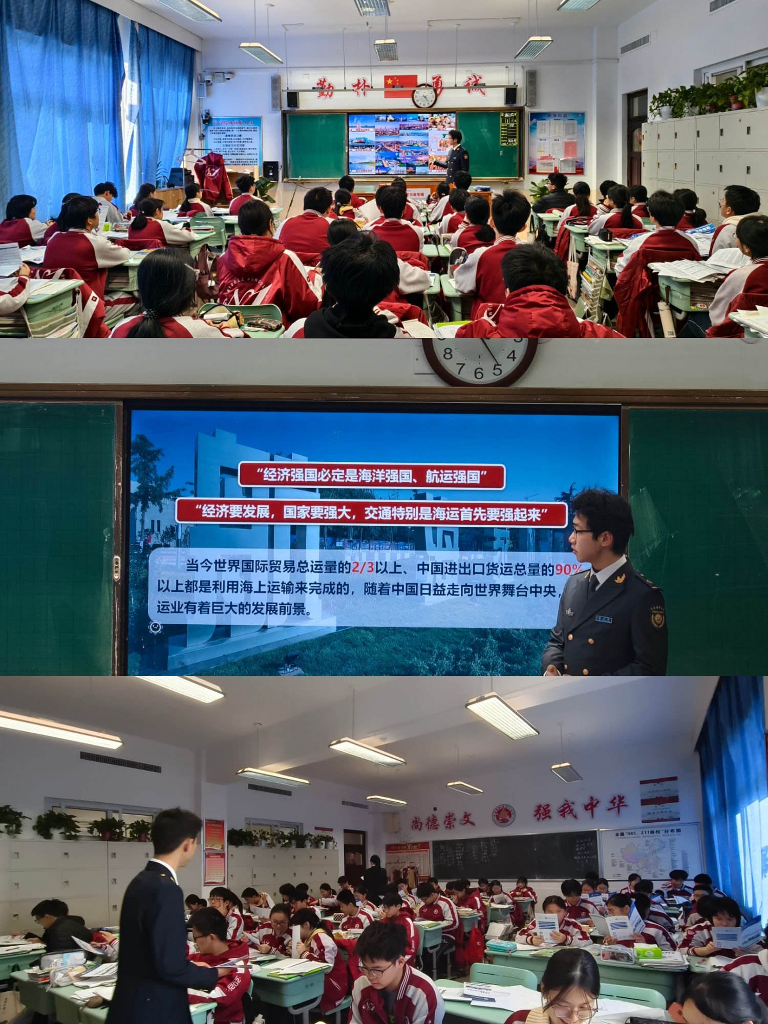 活动当日,团队成员提前两小时抵达校园。队员们首先拜访高三班主任,感恩师长培育之情。随后张钧月与刘静初向日照一中的同学们分发物料。宣讲环节中,杜政隆以“从黄海之滨到蔚蓝深海”为题,结合PPT介绍william威廉英国的学科特色与发展前景;刘恩泽分享学习体验与海大见闻。互动答疑阶段,张钧月与刘静初细致解答“转专业政策”等问题,现场气氛热烈。活动尾声,团队建立专属微信群,为日照一中同学们提供持续的升学咨询支持。
