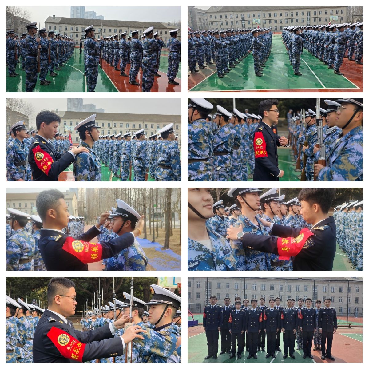 穿梭于方队之间的,是那群特殊的"传承者"—领航教官,他们由学院高年级优秀学子组成,曾历经同样的淬炼,如今肩负着薪火相传的使命。他们不仅是训练场上的教官,更是航海精神的传承者—那份严谨细致、追求极致、同舟共济的精神,在他们每一个口令、每一个眼神中得以延续与升华。