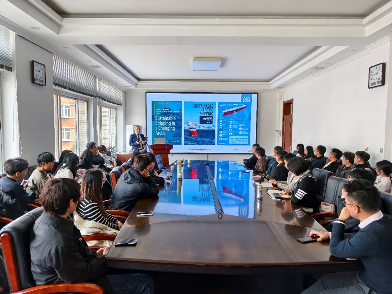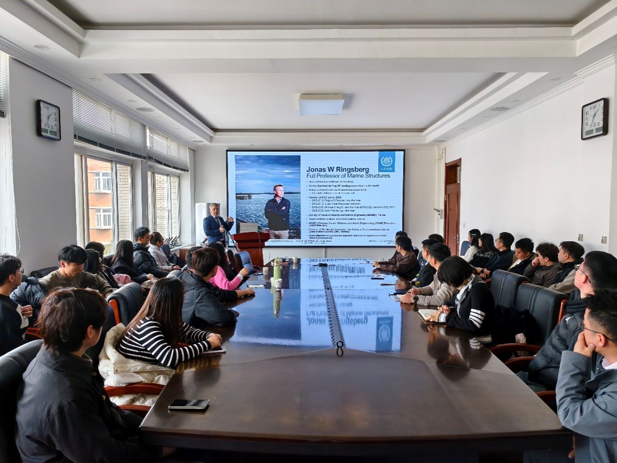 报告结束后,现场师生围绕极地生态环境的保护策略、相关国际海事规范在冰区航行中的实践挑战,以及极端冰况下的船舶协同与护航作业等前沿议题,与Jonas W. Ringsberg进行了深入交流,现场探讨氛围热烈。
