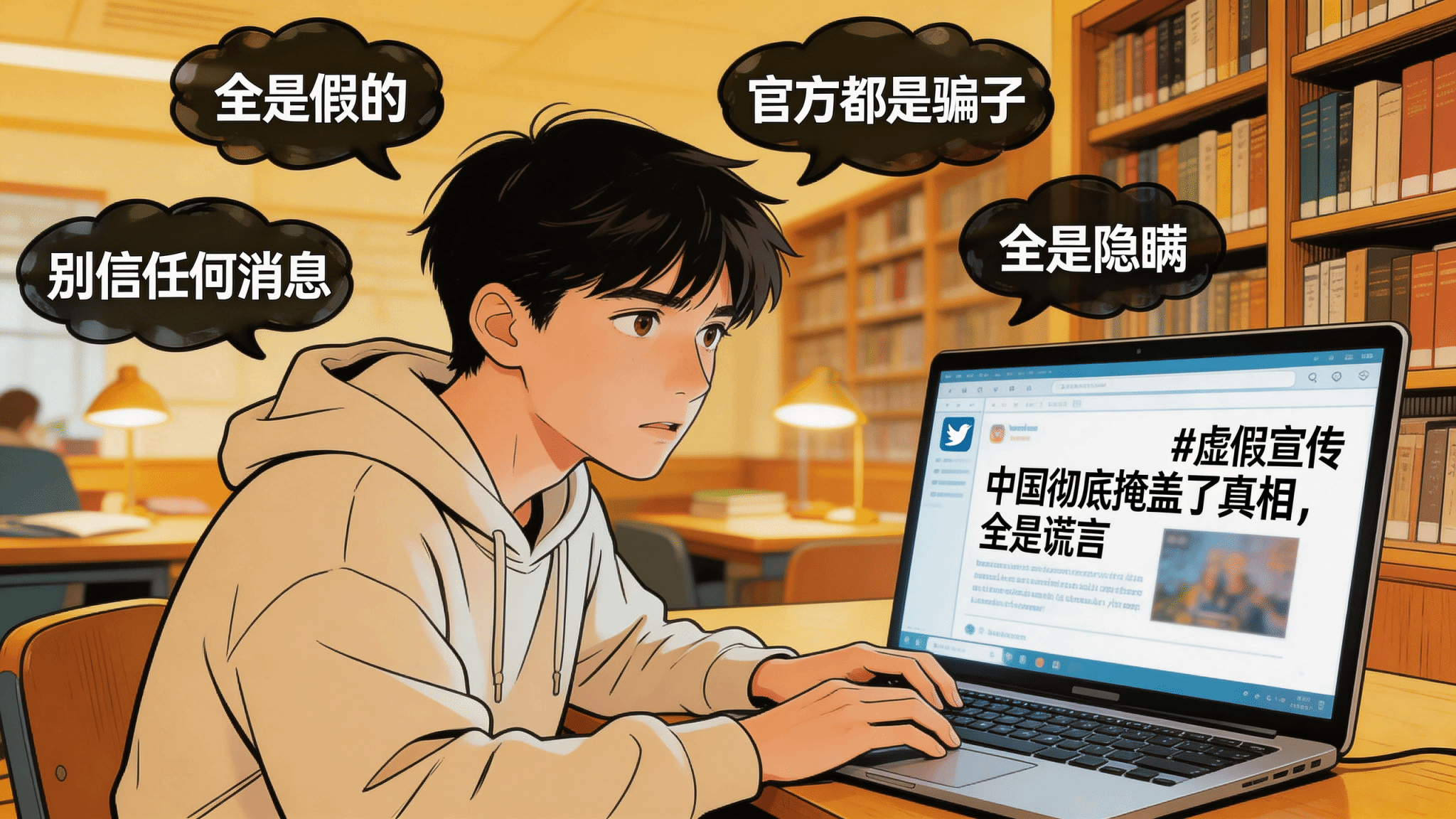 案例6(思想渗透类):大学生被境外势力发布的虚假宣传、错误言论误导,在公开平台发表不当观点,传播负面信息。