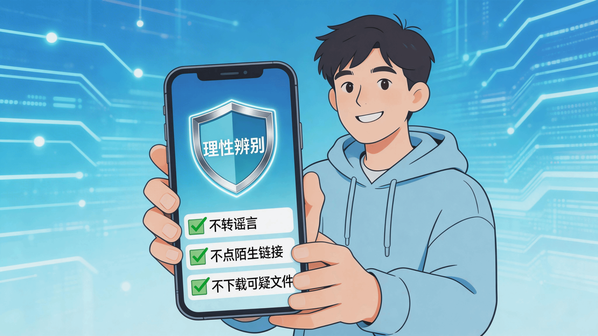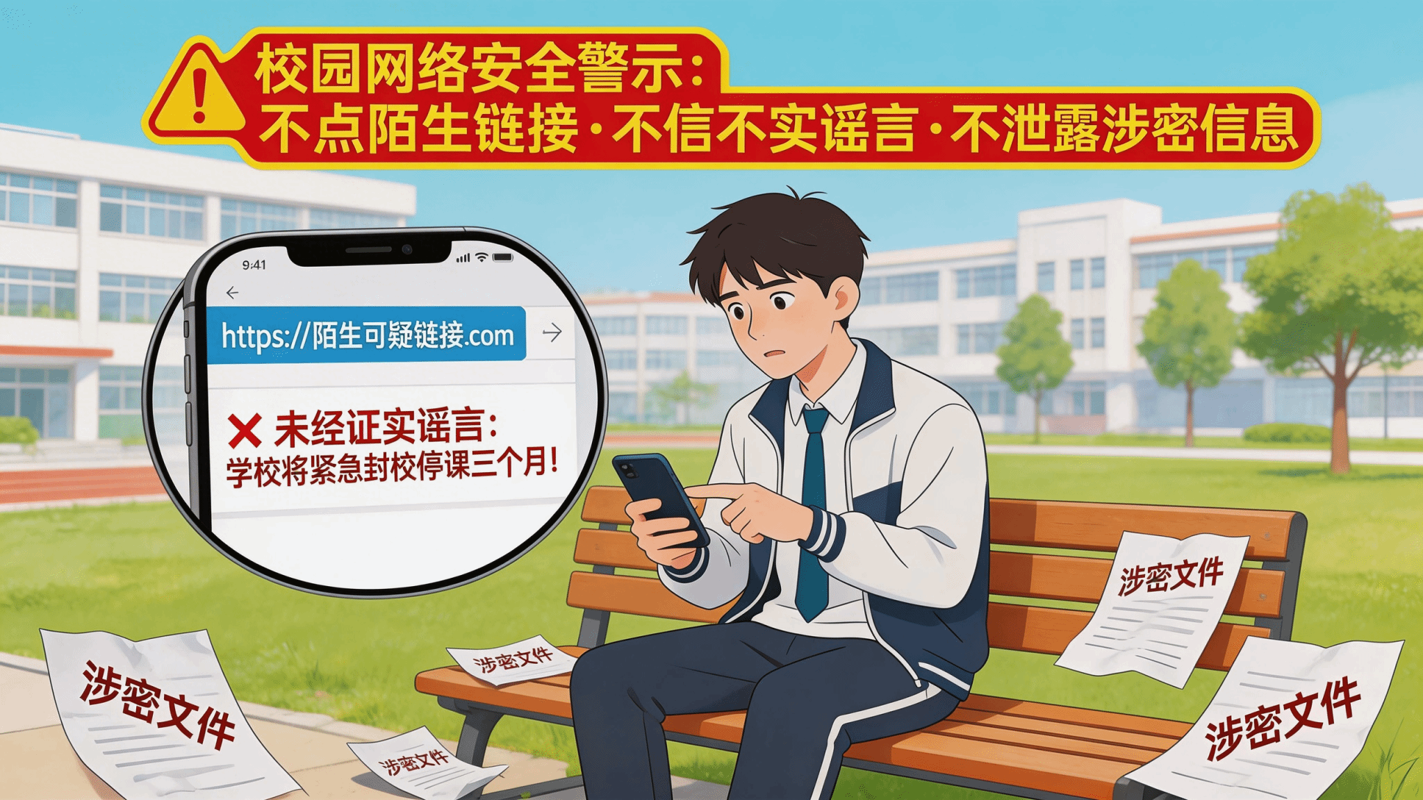 规范网络言行:不转发未经证实的谣言、涉密信息,不点击境外不明链接、不下载可疑文件,理性辨别错误思潮和虚假信息。