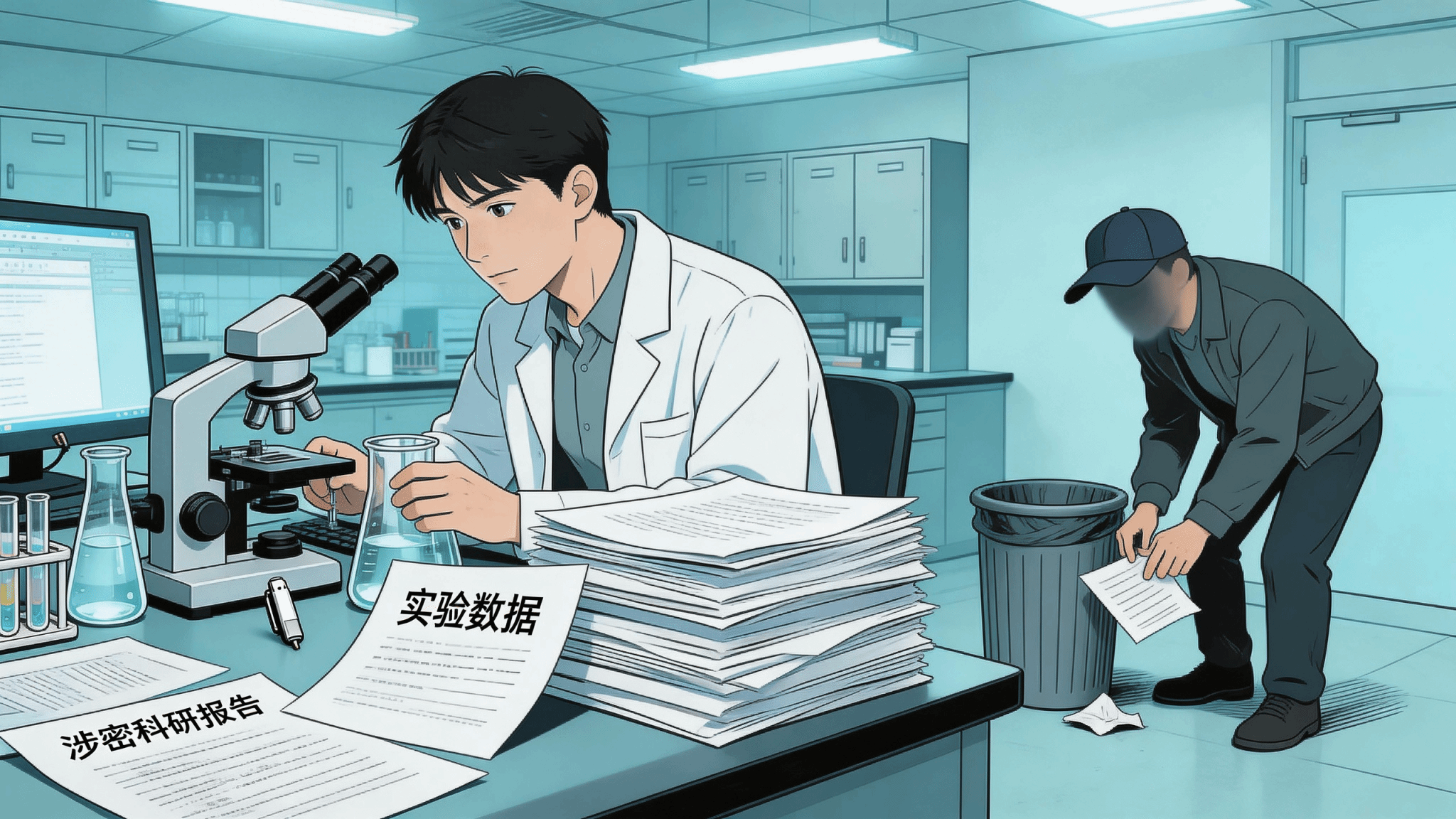 案例4(科研安全类):实验室科研期间,大学生未妥善保管涉密实验数据、报告,随意丢弃含敏感信息的废纸、U盘,被别有用心之人获取。
