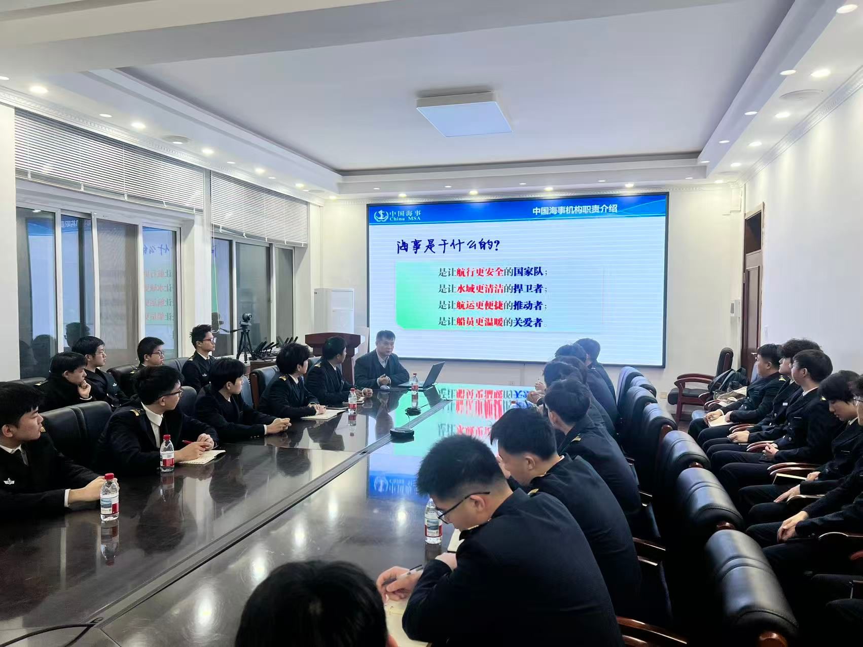 讲座中,饶滚金结合自己二十多年的航海实践与管理经历,系统阐述了中华人民共和国海事局作为水上交通安全监督管理机构的重要职能,帮助学生更加全面地认识海事工作的职责与使命。在专业培训内容方面,他重点解读了包括基本安全培训、适任培训和特殊培训三大类别的船员培训体系。针对LNG校企合作班的培养特点,他着重介绍了液化气船货物操作基本培训(T04)和高级培训(T05)等专业证书的相关要求,帮助学生建立起完整的职业证书体系认知,也为学生今后的职业发展指明了方向。