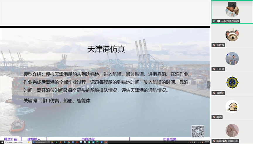 随后,他聚焦于仿真领域的前沿方法展开深入阐述。首先,他介绍了优化算法与仿真模型的耦合技术,说明如何通过仿真反馈指导复杂系统的寻优过程,从而提升行人疏散与交通组织的整体效率;其次,他讲解了强化学习在仿真中的创新应用,阐释智能体如何通过与动态环境的持续交互实现自适应学习,为应急疏散策略和船舶交通流调控提供更灵活的决策支持。在案例分享环节,他结合天津港运营仿真、国内运输网络零件配送仿真、化工厂毒气泄漏应急推演以及港口船舶进出港调度仿真等多个实际项目,系统展示了多方法融合建模技术在港口集疏运优化、海上安全管控与人员应急撤离等领域的具体应用与显著成效。